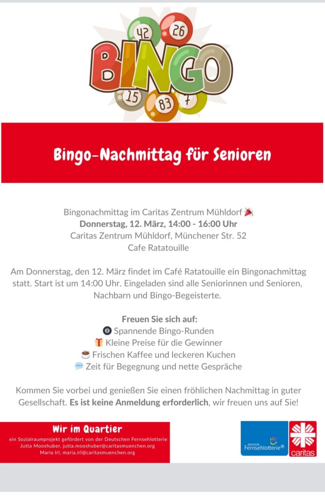 In dieser Woche findet am Freitag wieder das Angebot der Seniorenseelsorge im Landkreis Mühldorf Auf einen Ratsch statt. Das ist ein niederschwelliges Angebot, mit anderen Menschen in einen lockeren Kontakt zu kommen – bei einer kostenlosen Tasse Kaffee. Alle zwei Wochen – und diesmal eben am 6. März – lädt Marianne Kaltner in den Edekamarkt Lechertshuber-Wimmer in der Oderstraße in Müldorf von 10 bis 12 Uhr ein.